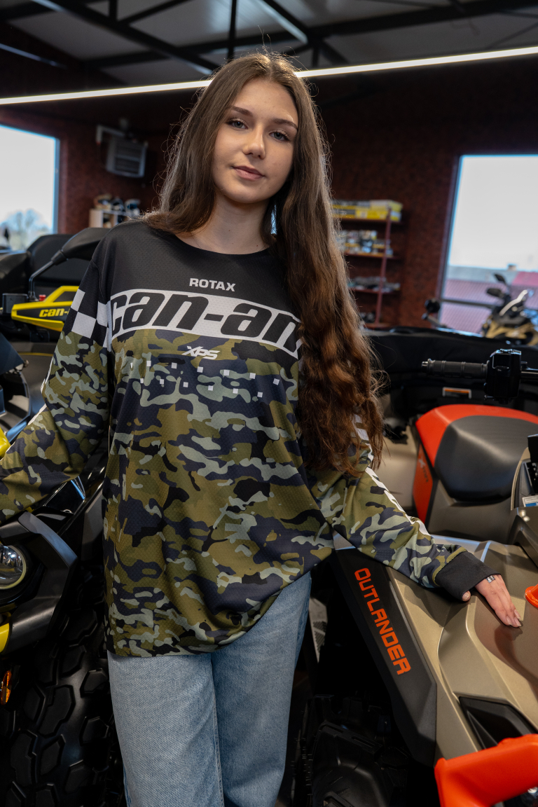 Profesjonalna koszulka off-roadowa Can-Am Emblem Jersey w rozmiarze L, przeznaczona dla entuzjastów marki Can-Am oraz aktywności terenowej. Model ten cechuje się wyrazistym, militarnym designem w stylu camouflage, idealnym do jazdy ATV/UTV oraz innych sportów ekstremalnych.