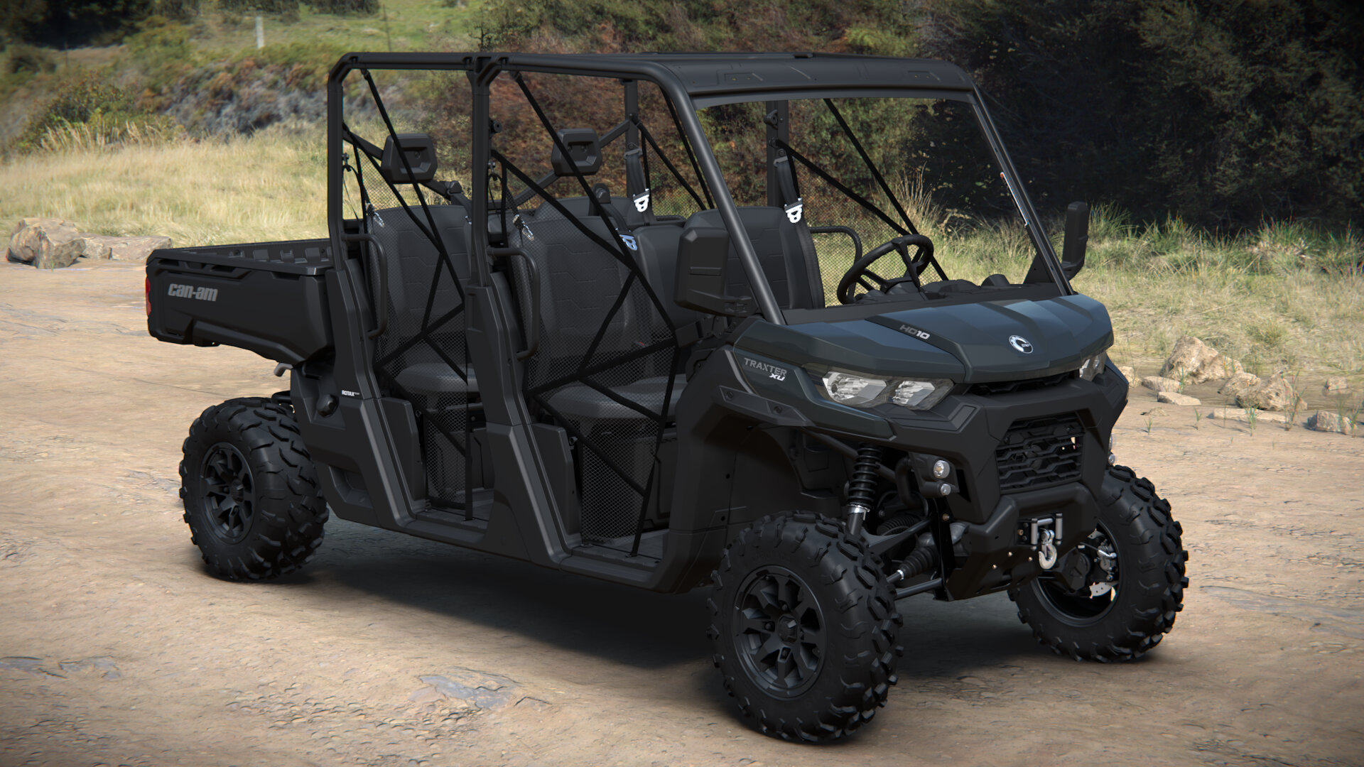 Can-Am TRAXTER MAX XU HD10 T ABS MY24 to zaawansowany pojazd terenowy stworzony z myślą o wymagających użytkownikach. Dzięki dynamicznemu wspomaganiu kierownicy (DPS) oraz systemowi ABS zapewnia maksymalne bezpieczeństwo i komfort jazdy. Mocny silnik Rotax® 976 cm³ V-Twin o mocy 82 KM i momencie obrotowym 93 Nm gwarantuje wysoką wydajność w każdych warunkach. Pojazd wyposażony jest w liczne zaawansowane systemy wspomagające jazdę, takie jak elektroniczny system wspomagania zjazdu i tryby jazdy ECO™, które dostosowują jego działanie do różnych potrzeb. Solidna konstrukcja z pełną osłoną podwozia i wysokiej jakości komponenty sprawiają, że jest to niezawodne narzędzie pracy i rekreacji. Wysoka ładowność oraz zdolność holowania czynią go idealnym wyborem dla profesjonalistów. Pojazd ten może pomieścić do sześciu osób, co czyni go idealnym do zadań wymagających transportu większej liczby osób.