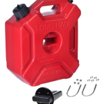 Plastikowy kanister na paliwo w zestawie razem z mocowaniem, pojemność 5 litrów, zakrętka, 29 x 25 x 12 cm, standardowa średnica korka wlewu, oddzielny korek odpowietrzający, z wysokiej jakości odpornego na uderzenia polietylenu LLDPE o wysokiej gęstości.